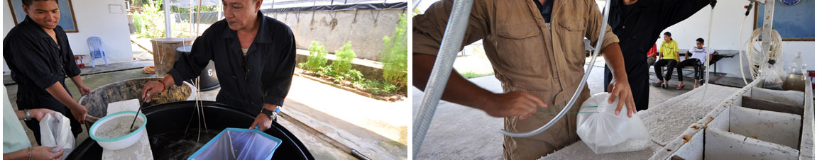 Sea bass fry are spawned, hatched and grown to the correct size before they are sold to local aquaculture farmers.